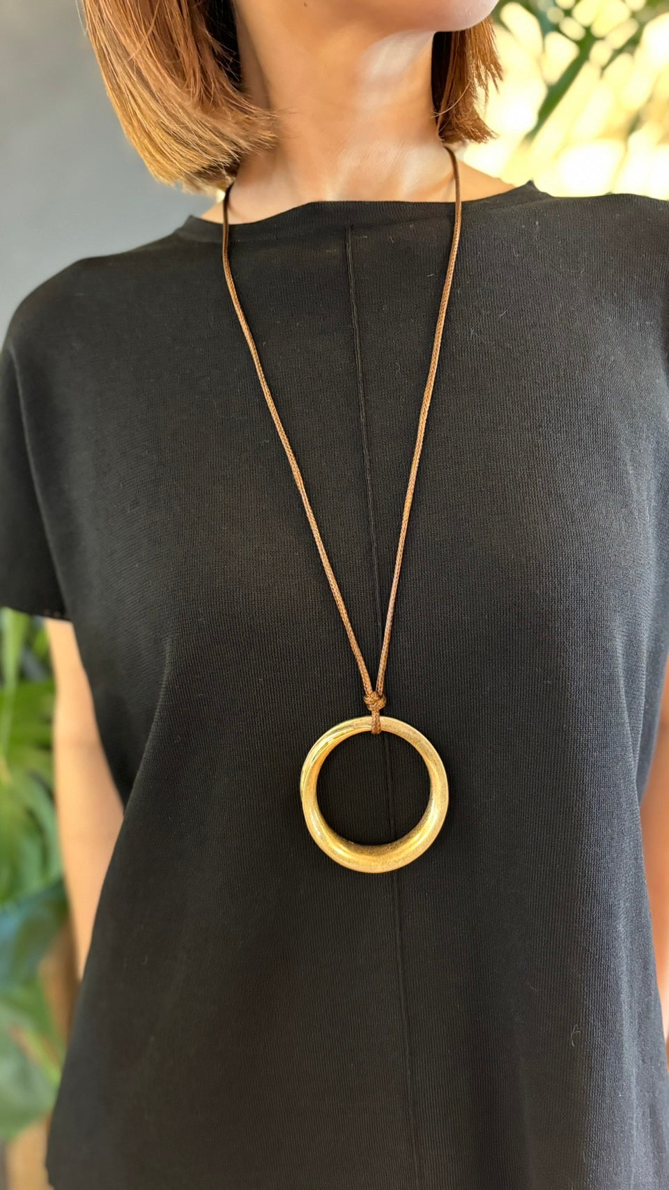 シンプルなゴールドのトップが胸元で優しくきらめくロングネックレス。無駄のないデザインは、オン・オフ問わず幅広いスタイルに馴染みます。長めのチェーンは縦のラインを強調し、顔まわりをすっきりと見せてくれます。
