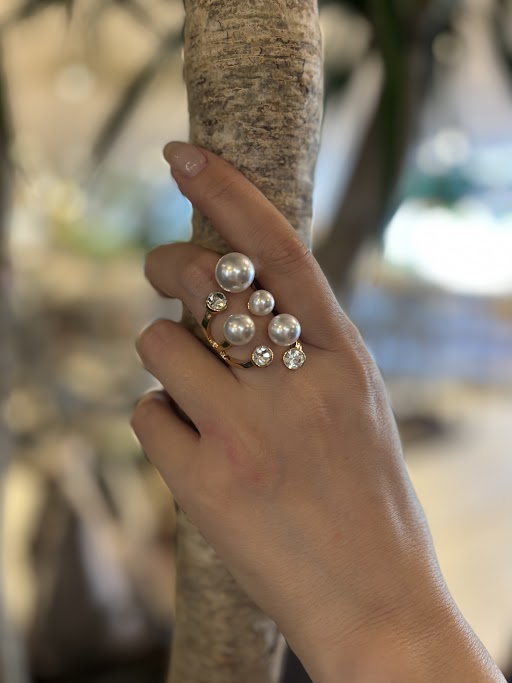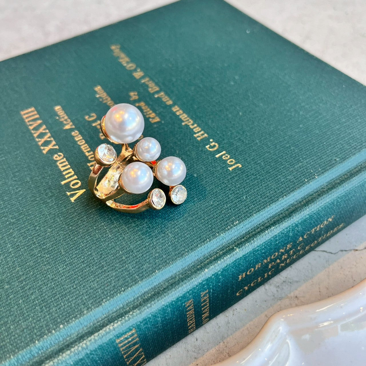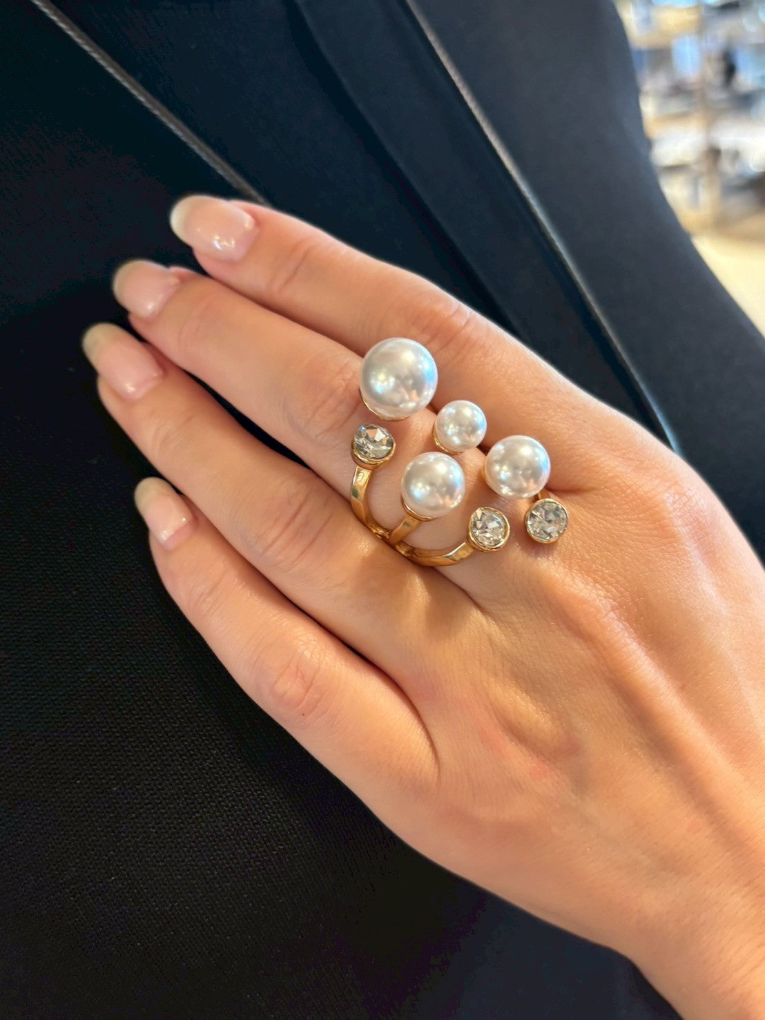 指をやさしく囲むようにデザインされたパールリング。まろやかな光を放つパールが、手元に上品な華やかさを添えてくれます。シンプルでありながら存在感があり、ひとつ身につけるだけでコーディネートのポイントに。普段使いはもちろん、特別な日の装いにもおすすめです。
