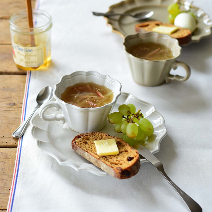 220ラウンドプレートは大きめの取り皿にしたり、スープを入れたマグをのせて、朝食にワンプレートとして使うのもおすすめ。トーストプレートとしても使いやすい大きさです。