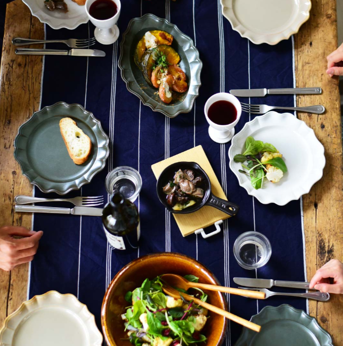 無骨で重厚感があり、暗めの色が食材を引き立て、テーブルコーディネートも引き締めてくれます。