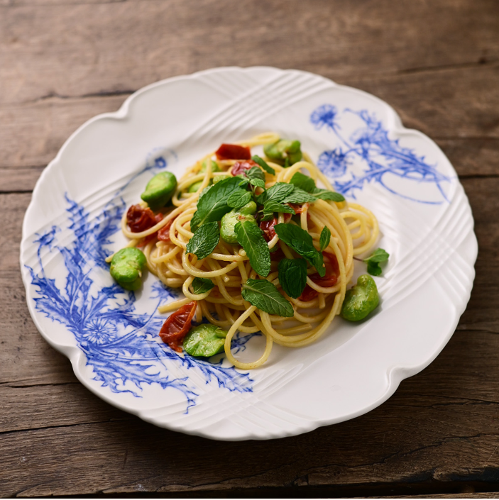 休日のリラックスしたひとときを、春のやわらかな空気感とともに楽しむ。