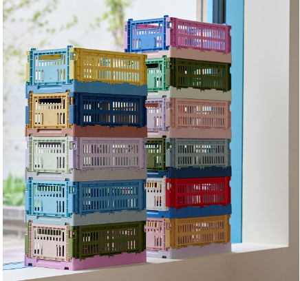 HAY COLOUR CRATEは、穴あきデザインが特徴のカラフルな収納ボックスシリーズです。リサイクルされた使用済みプラスチックを100%使用したこのクレートは、豊富な色とサイズ展開により、大きさの異なる大きさを組み合わせて積み重ねることができます。