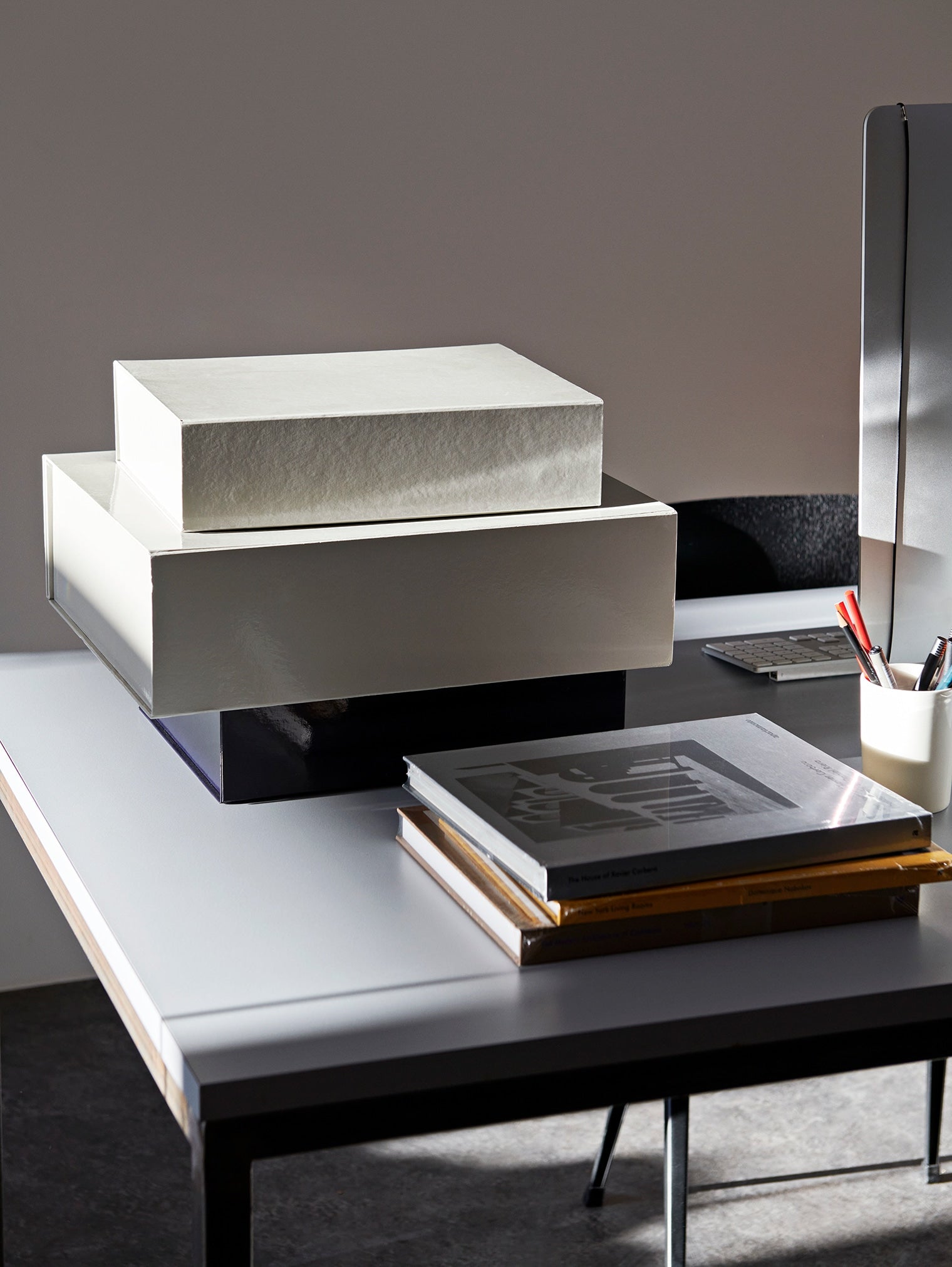 美しく光沢のある仕上がりの長方形のボックスは、FSC認証を受けた丈夫な極厚の厚紙で作られており、デスクや棚、食器棚などで、さまざまなアイテムの整理や収納にご利用いただけます。