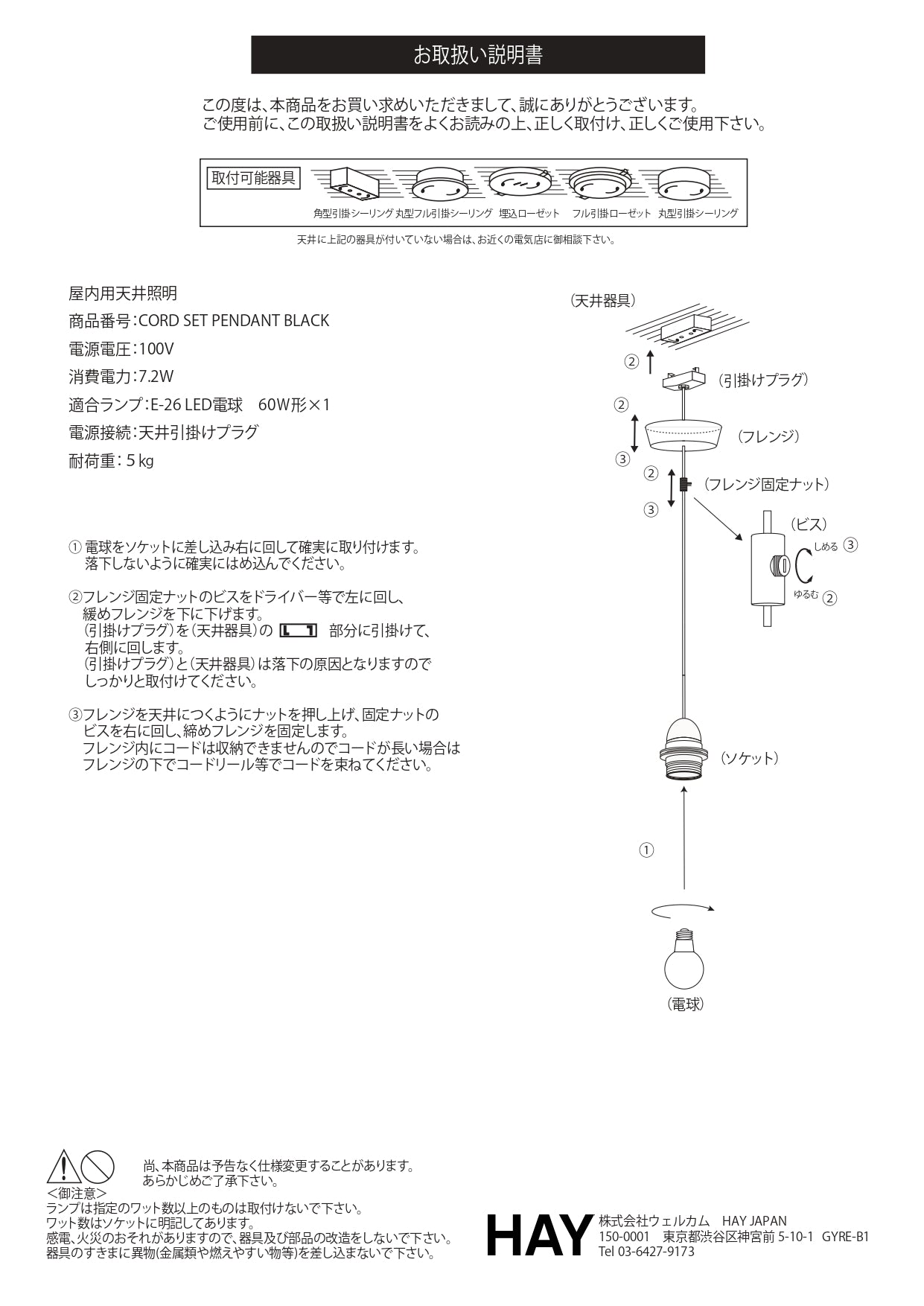 ※取付けた際、CORD SETの接地面と天井の間に多少の隙間が生じます。