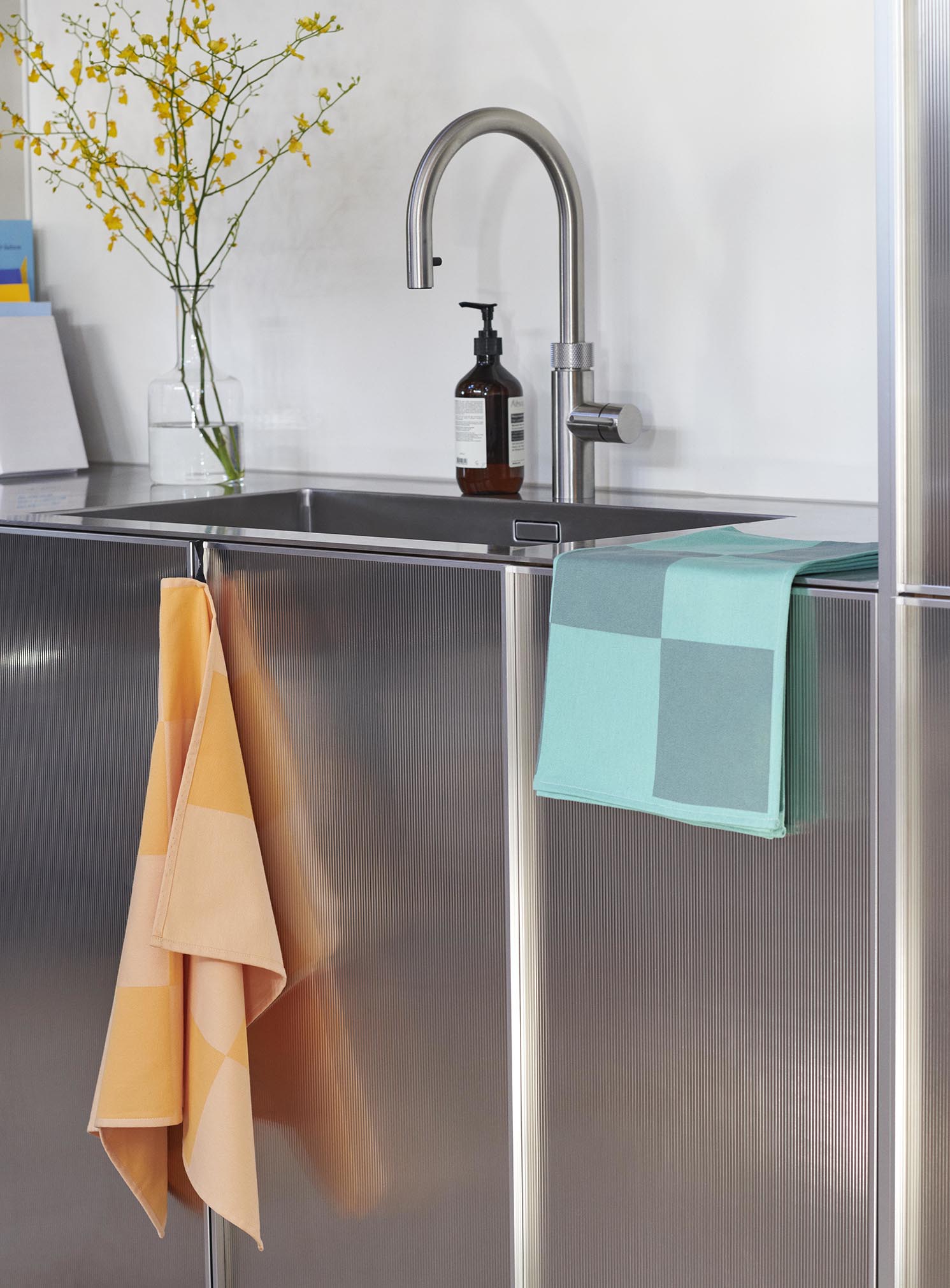 大胆な市松模様がデザインされたKATSURA TEA TOWELは、キッチンに彩りと機能性をもたらします。