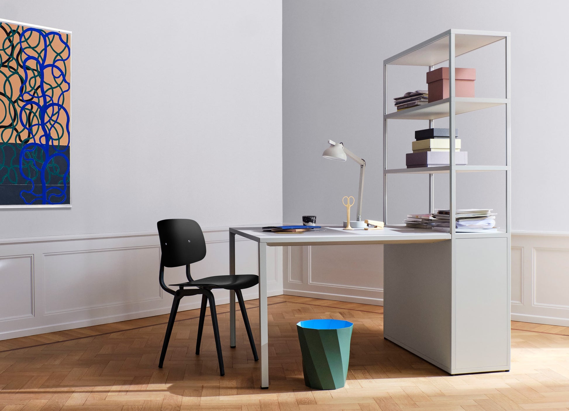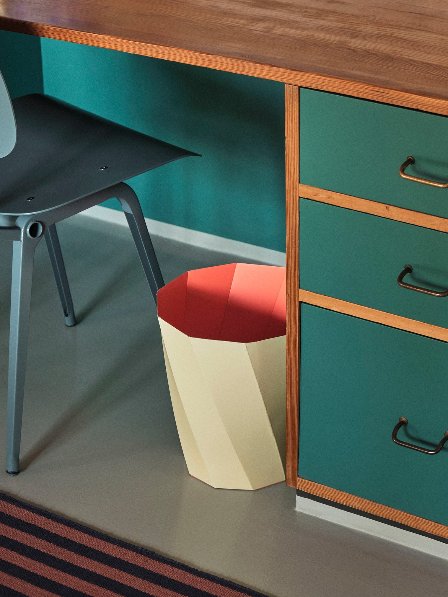 対比する色と紙を斜めに折り曲げる手法を組み合わせることで、どんなお部屋も明るくする、遊び心あるカラフルさが魅力です。